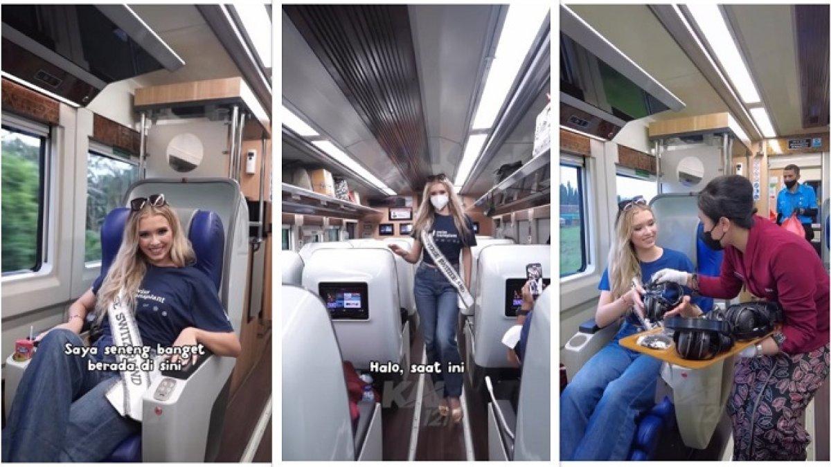 Momen keseruan Alia Guindi saat naik KA Gajayana Luxury terlihat melalui unggahan video akun Instagram @kai121_.