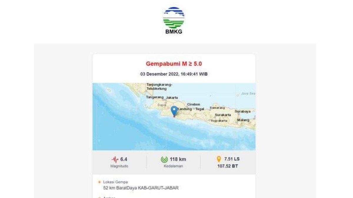 TRIBUNTRAVEL.COM - Gempa bumi magnitudo 6,4 melanda Garut, Jawa Barat, Sabtu (3/12/2022).