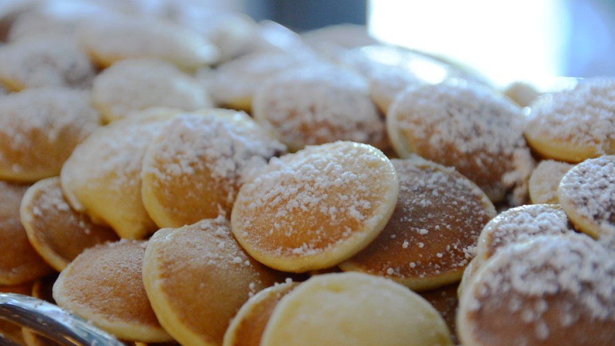 Berukuran kecil, poffertjes rasanya mirip pancake dengan tambahan gula halus di atasnya.