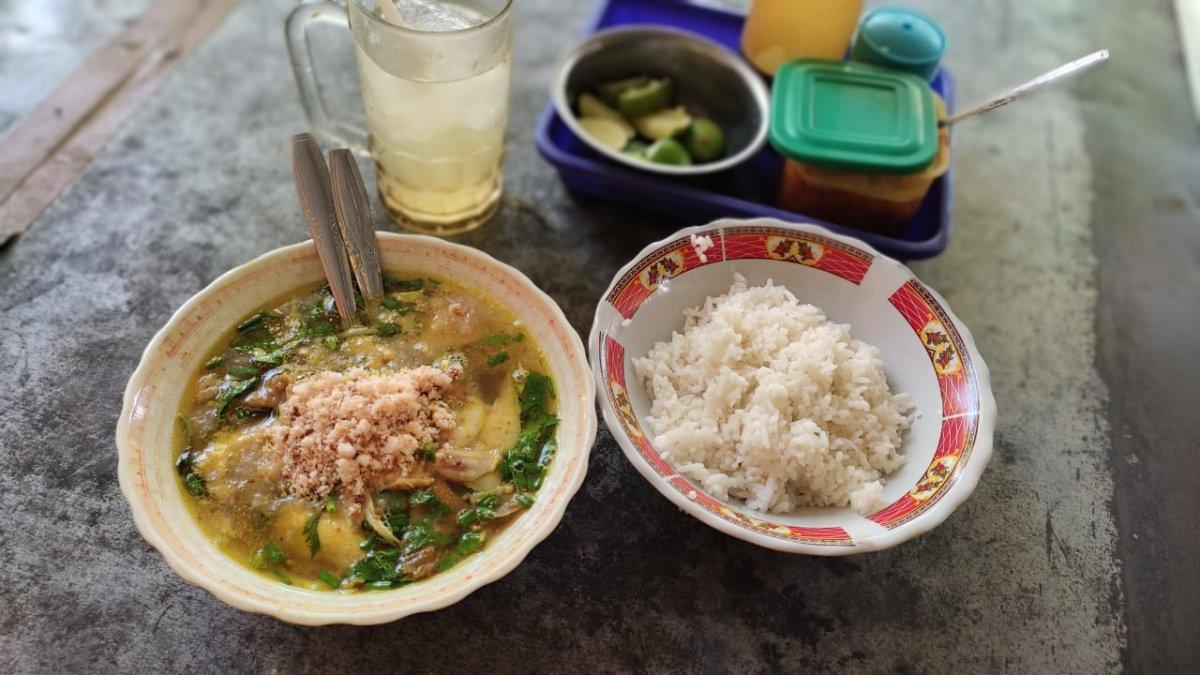 Satu porsi soto ayam dengan nasi dipisah serta es jeruk, kamu hanya cukup meorgoh kocek seharga Rp 20 ribuan.
