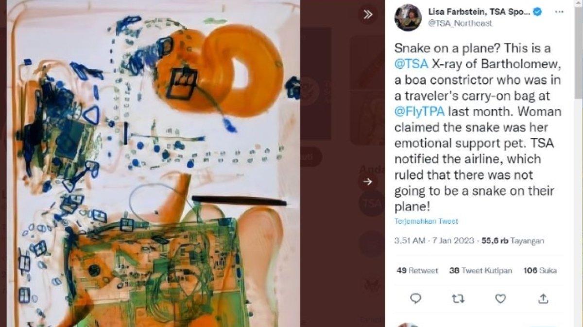 Mengacu pada aturan, membawa ular dalam koper atau tas jinjing ke pesawat memang tidak diperbolehkan saat berangkat atau tiba di AS.