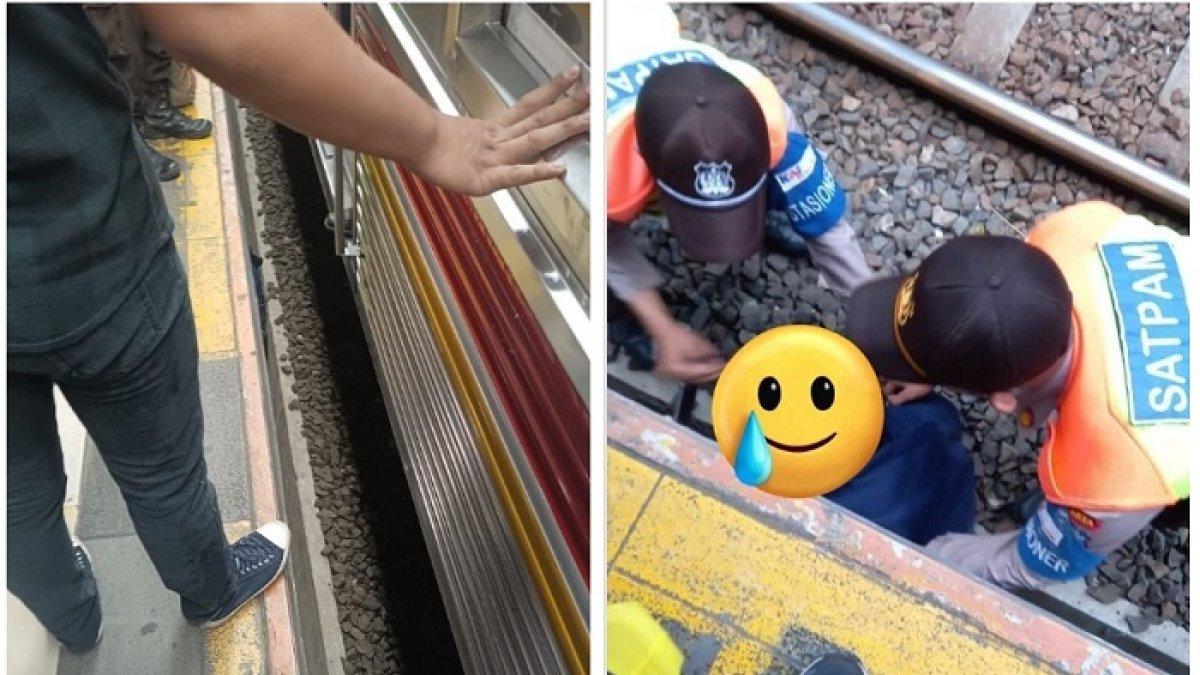 "Update terkini, korban yang jatuh ke kolong peron selamat setelah diminta masuk kolong peron," ungkap pengunggah.