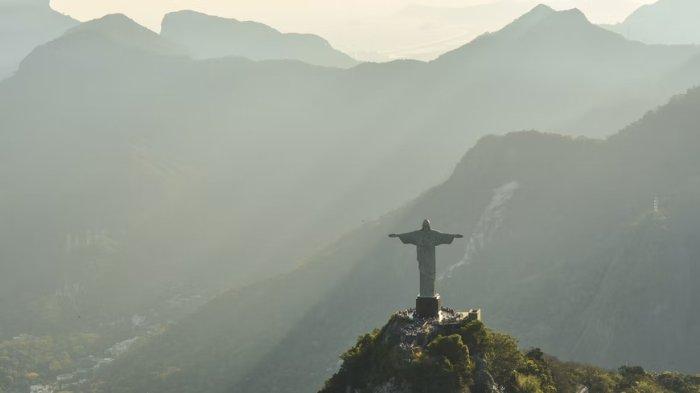 TRIBUNTRAVEL.COM - Viral foto Patung Kristus Penebus di Rio de Janeiro, Brasil tersambar petir saat hujan lebat pada Jumat (10/2/2023).