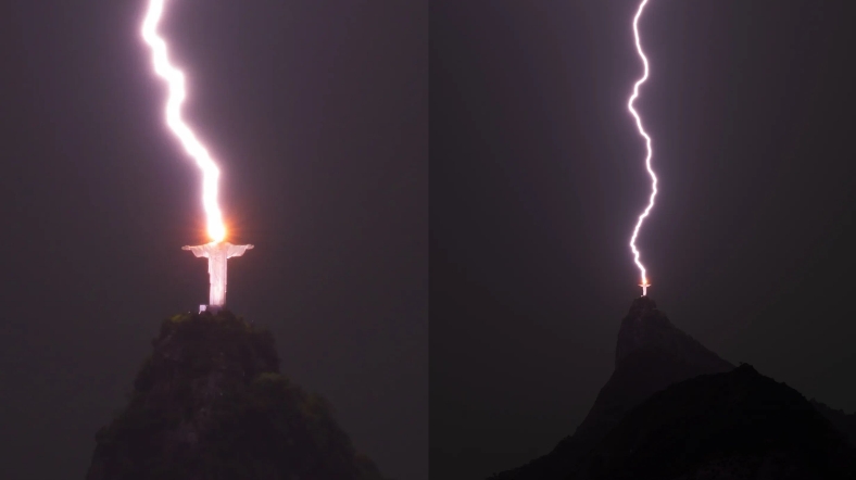 Momen ini bukanlah pertama kalinya Patung Kristus Penebus tersambar petir.