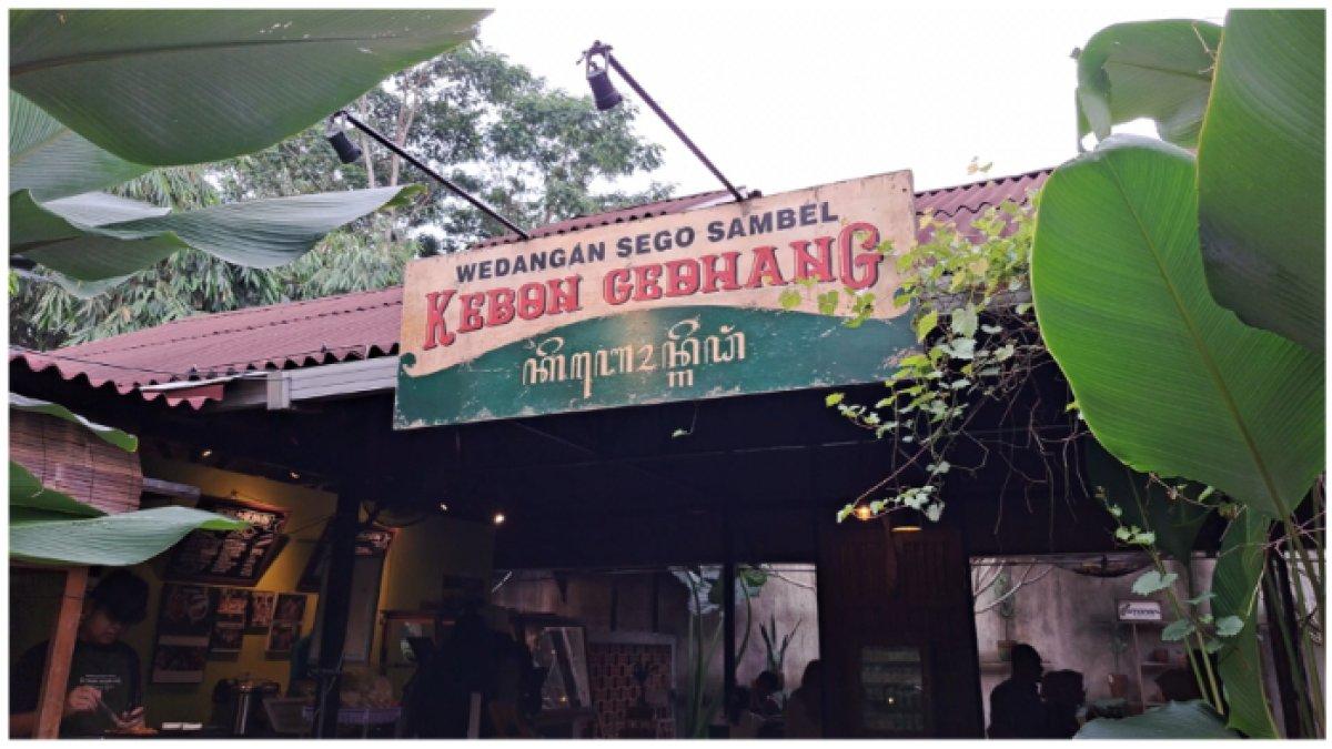 Wedangan Sego Sambel Kebon Gedhang di Semarang yang dekat hotel dan temapat sewa motor, menawarkan tempat makan dengan konsep ala pedesaan.