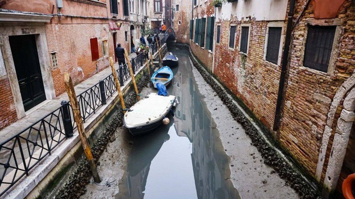 Air yang surut di sepanjang kanal Venesia disebabkan oleh kurangnya hujan di musim dingin.