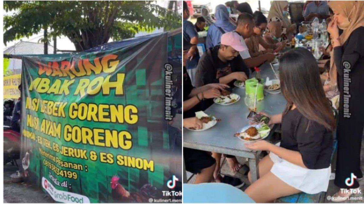 "Setelah antre panjang akhirnya dapat juga guys bebek mimin, tapi bingung juga mau duduk di mana soalnya full banget, harus cepet-cepetan berebut tempat duduk guys," jelas akun TikTok @kuliner1.menit.