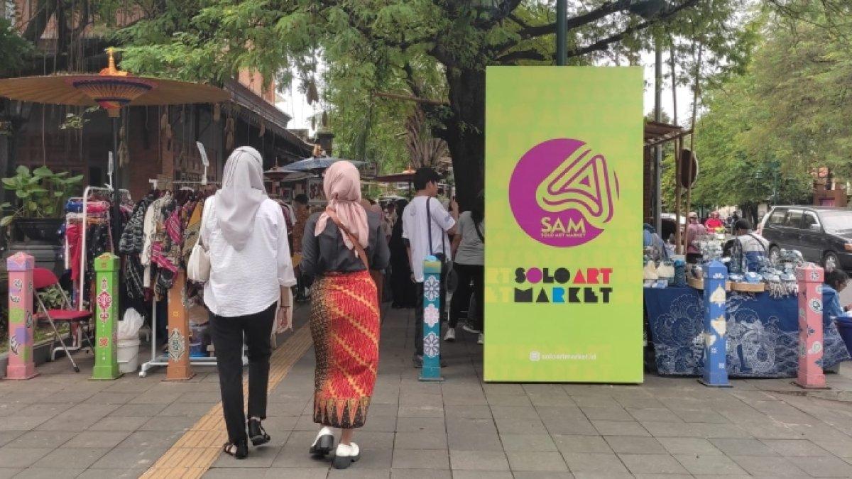 Sebagai patokan, Solo Art Market digelar di sepajang jalan yang terletak persis di depan Pasar Triwindu hingga area depan Kulonuwun Kopi Saka Omah Sinten.