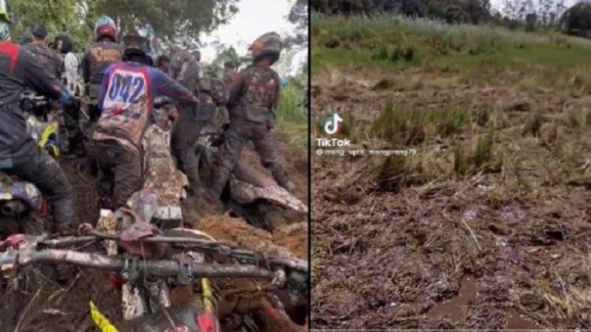 Melansir Tribun Jabar, Kamis (9/3/2023), terdapat lekukan jejak tanah bekas dilintasi ban sepeda motor di jalan dan camping ground.