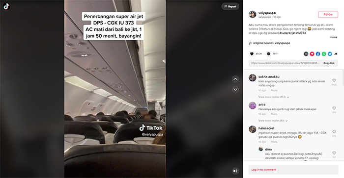 Dalam keterangannya video yang diunggahnya, pemilik akun menuliskan menyebutkan bahwa pesawat yang ditumpanginya selama 1 jam 50 menit terbang tanpa AC.