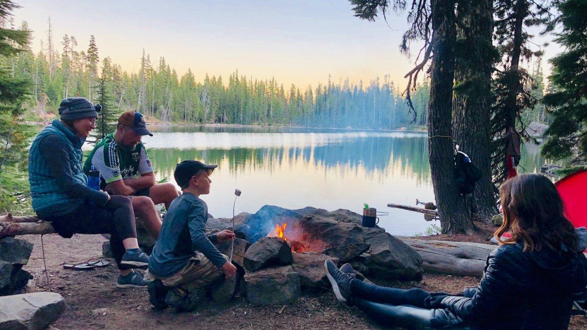DeOrr membantu orang tuanya mendirikan perkemahan dan membuat api unggun.