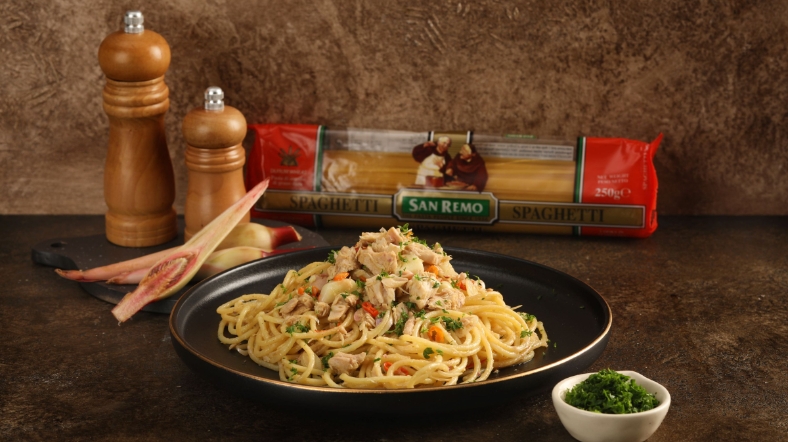 Kali ini, San Remo akan membagikan resep olahan pasta yaitu spaghetti aglio olio tuna kecombrang.