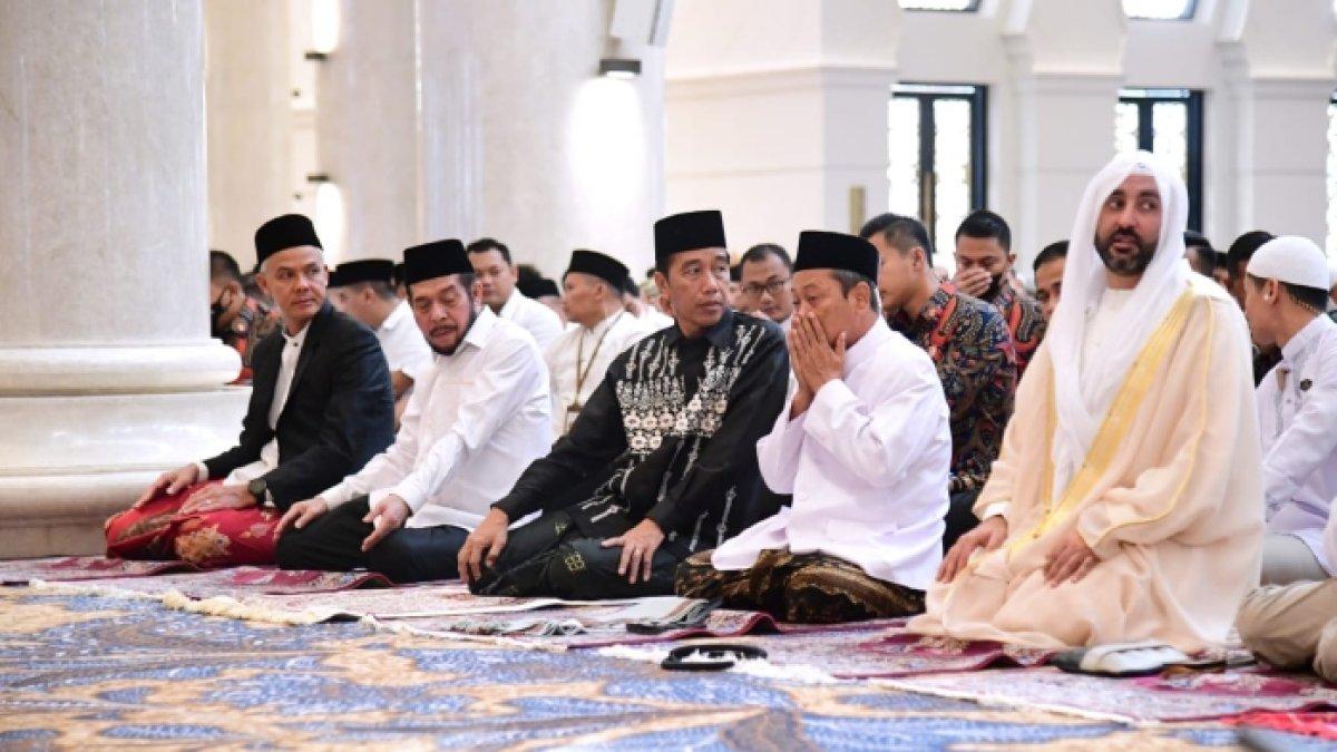 Ia ikut menunaikan salat Idul Fitri di Masjid Raya Sheikh Zayed bersama Presiden Jokowi pada Sabtu (22/4/2023).