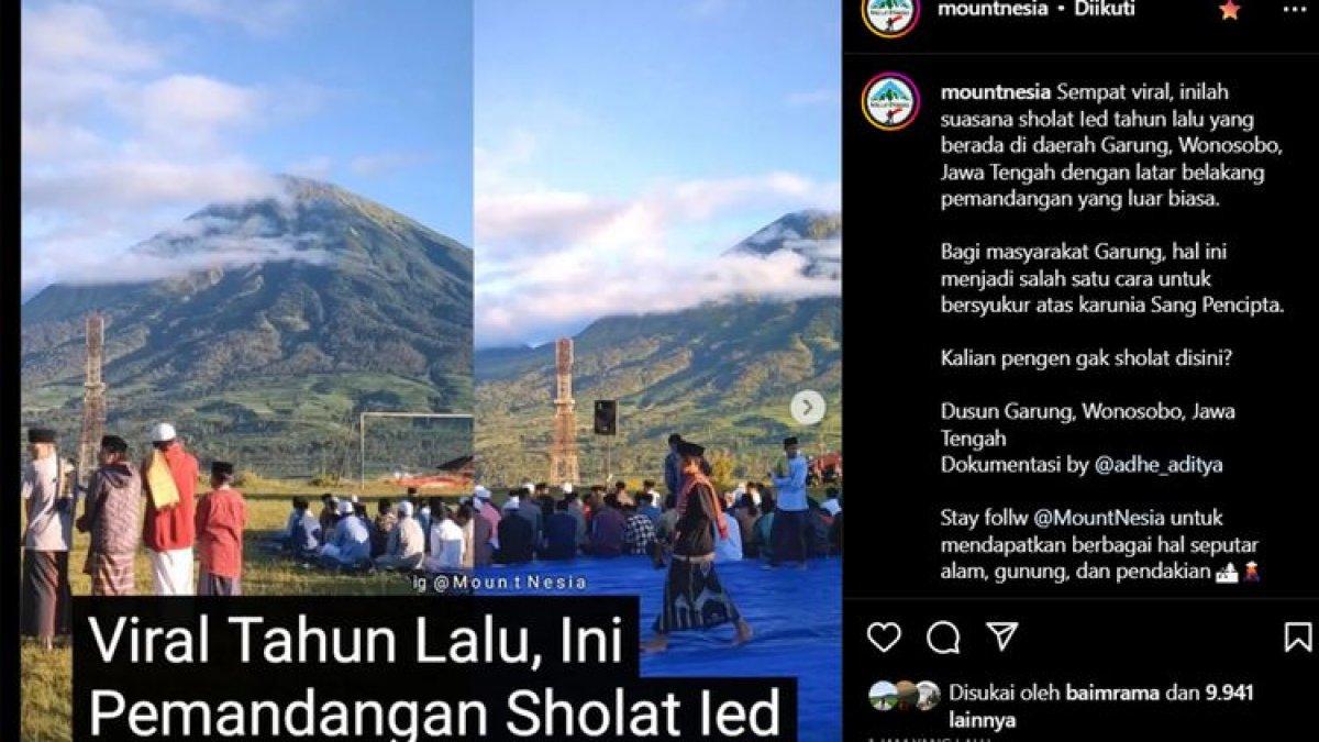 Lokasi salat Id dengan pemandangan indah gunung tersebut berada di Dusun Garung, Desa Butuh, Kecamatan Kalikajar, Kabupaten Wonosobo, Jawa Tengah.