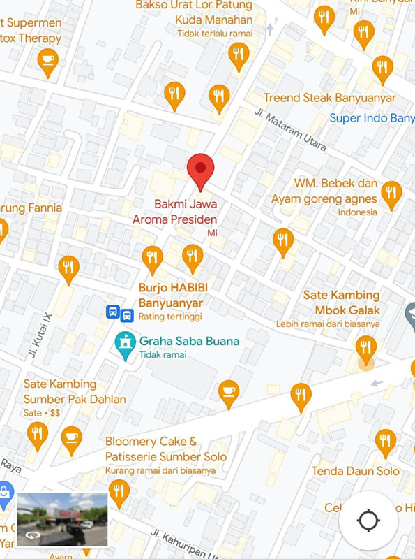 Bakmi Jawa Aroma Presiden lokasinya cukup dekat dengan Gedung Saba Buana yakni berjarak sekira 500 meter.