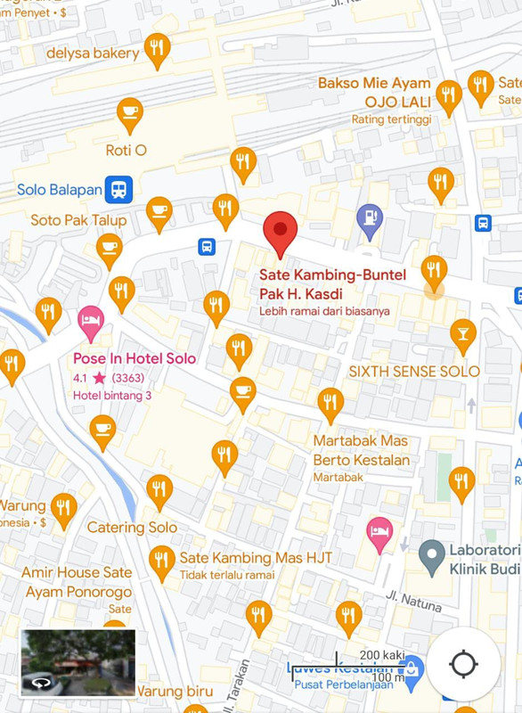 Tempat makan sate buntel favorit di Solo berikutnya ada Sate Kambing-Buntel Pak H. Kasdi.