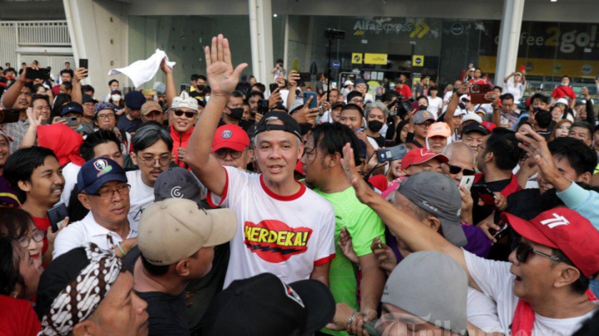 Ribuan kawula muda hingga kelompok lanjut usia yang sedang berolahraga, maupun yang sekadar melintas mengerubungi bakal calon presiden (bacapres) dari PDIP tersebut.