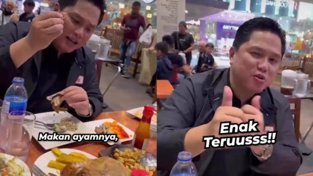 "Makannya ayam, ayam goreng, enak teruuus," kata Erick Thohir.