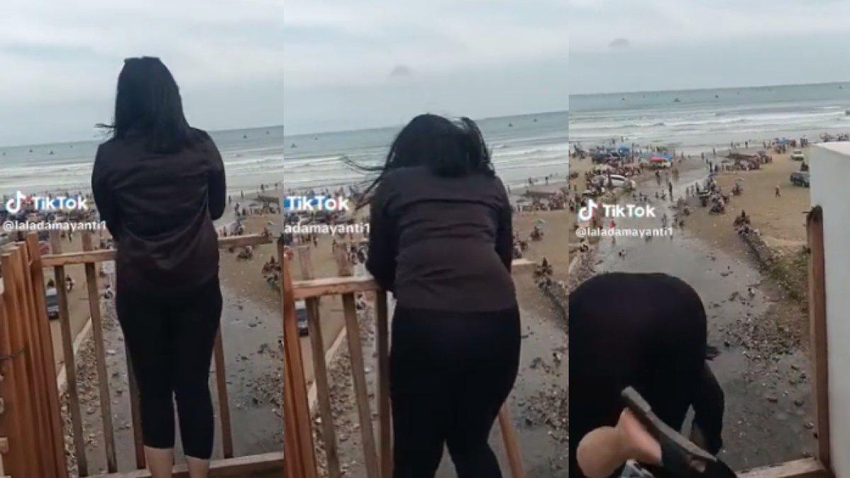 Dalam video yang beredar, terlihat seorang pengunjung wanita hendak menyaksikan pemandangan dari menara pandang.