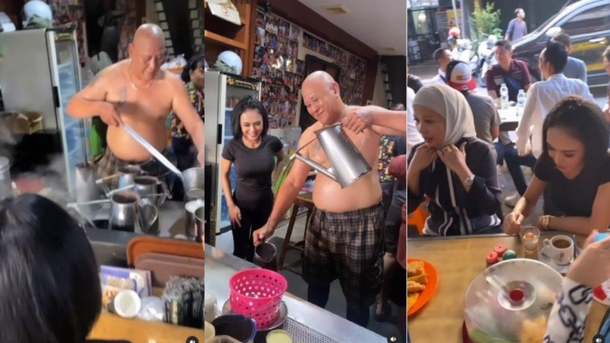 Ya, pria telanjang dada yang ditemui Yuni Shara di Pontianak adalah sosok Asiang, sang pemilik warung.