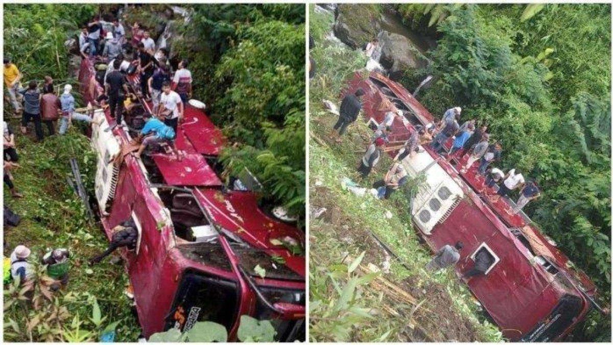 Bus yang melaju sendiri akhirnya menabrak pembatas jembatan, jatuh ke jurang dan masuk ke sungai.
