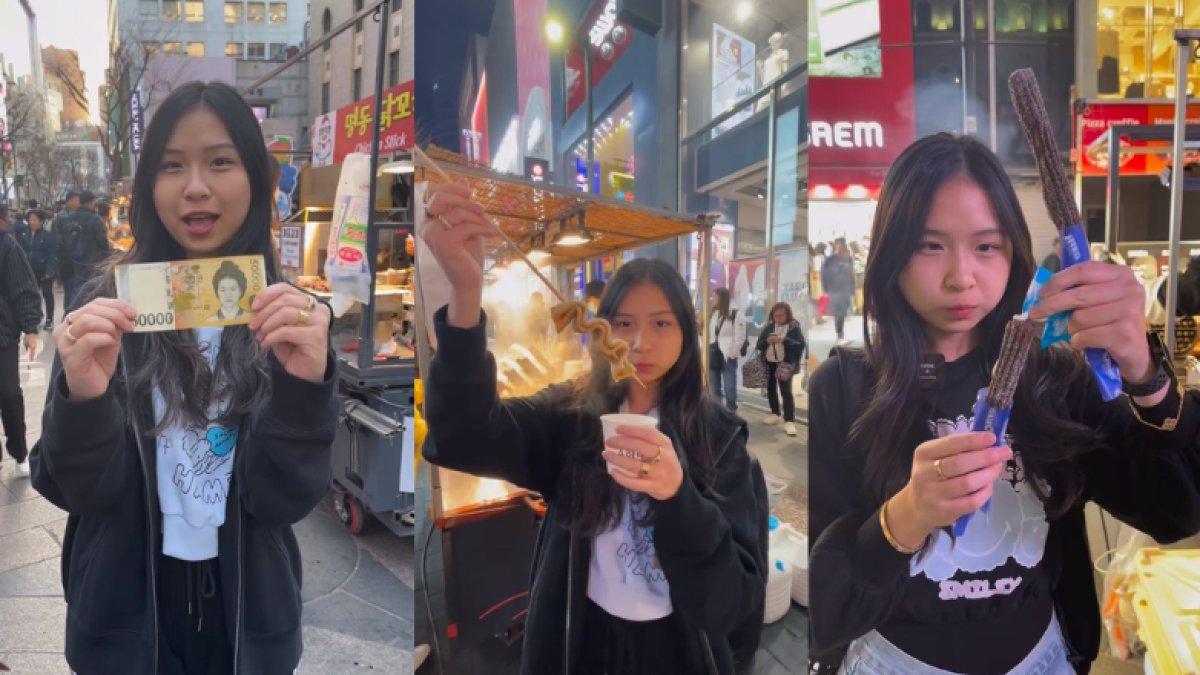 Dalam unggahannya, Aliyyah Kohl mengatakan bahwa dirinya berburu street food di Myeongdong dengan membawa uang sebesar 50.000 won atau sekira Rp 557 ribu.