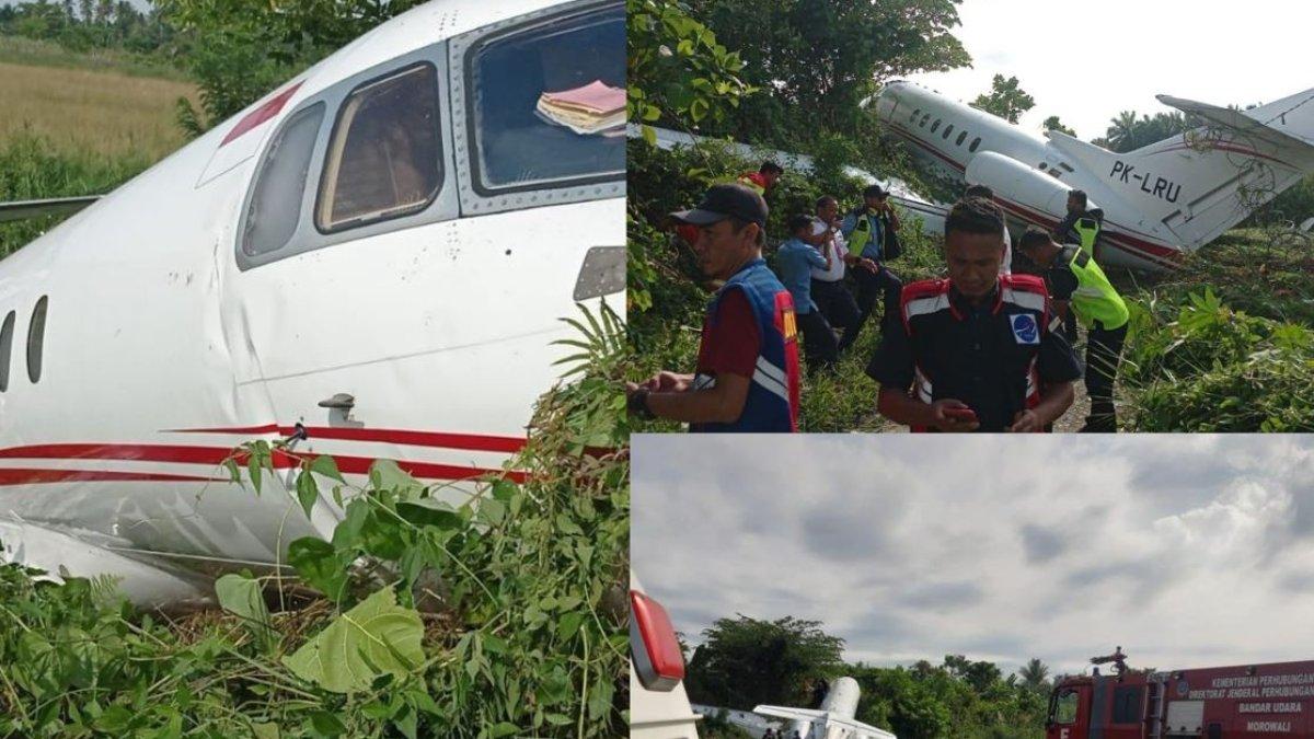 TRIBUNTRAVEL.COM - Sebuah pesawat tergelincir di Bandara Maleo, Desa Umbele, Kecamatan Bumi Raya, Kabupaten Morowali, Sulawesi Tengah, Kamis (11/5/2023) sekira pukul 15.00 Wita.