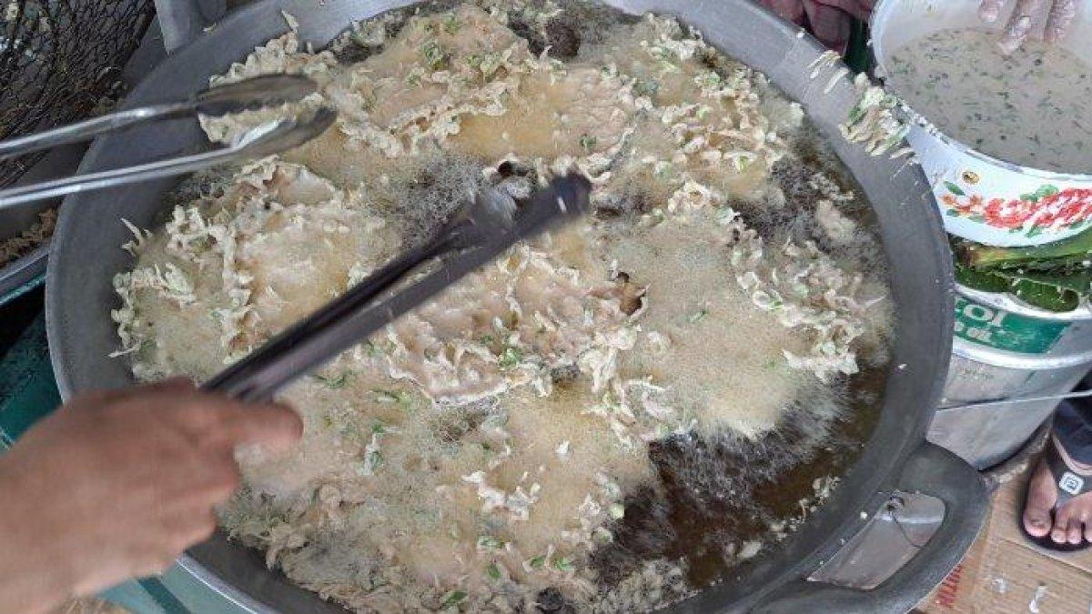 Saking besarnya, mendoan milik Toko Sawangan No 1 penjualnya harus digoreng dengan wajan raksasa.
