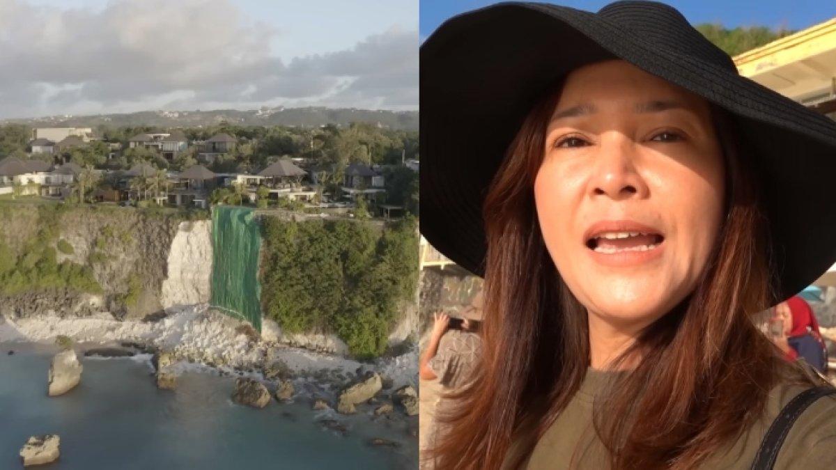 "Itu jatuh ke bawah karena terkena abrasi air laut sehingga tebingnya longsor, jadi ini benar-benar dikasih terpal sampai ke bawah," ungkap Maia Estianty.
