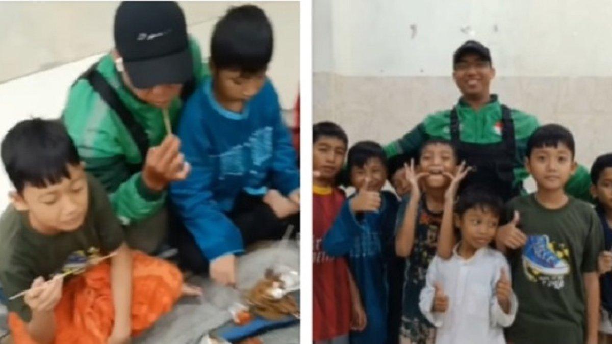 Tak langsung pulang, driver ojol itu pun diminta makan bersama anak-anak yatim di panti asuhan tersebut.