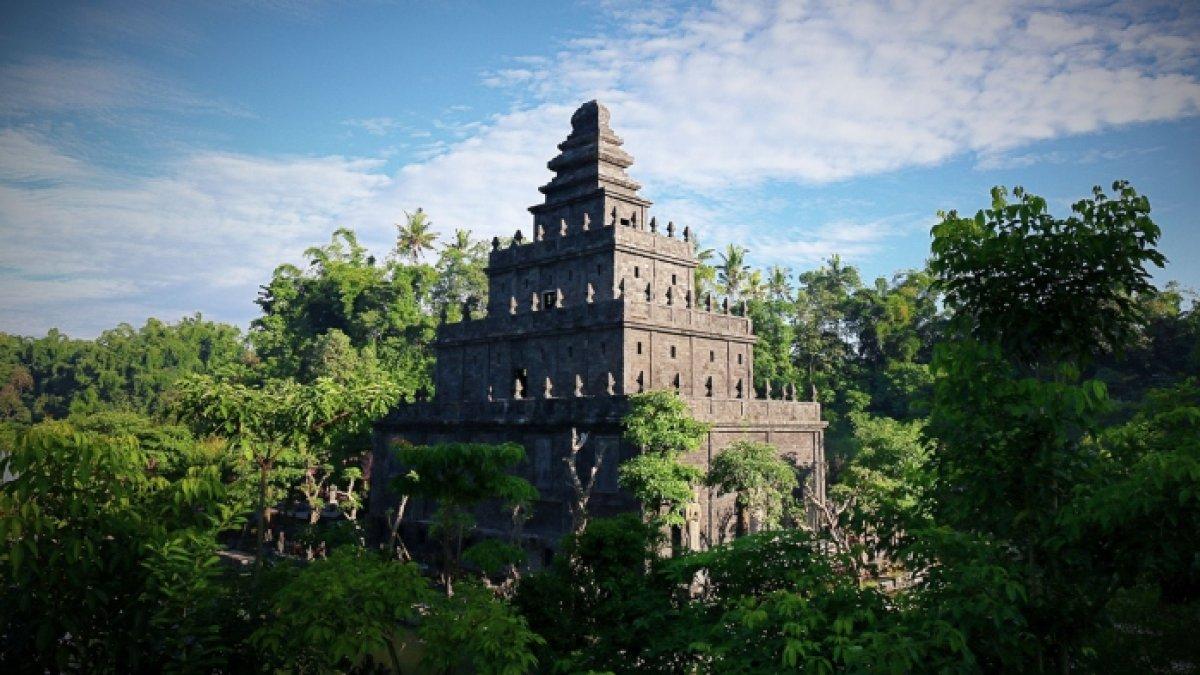 Berkonsep kerajaan masa lampau, di Lembah Tumpang terdapat replika candi dan arca.