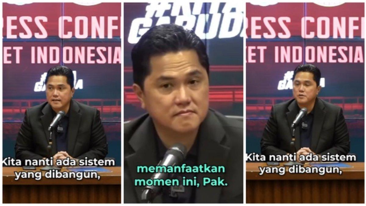 Hal itu diungkapkan oleh Ketua Umum PSSI, Erick Thohir dalam unggahan TikToknya.