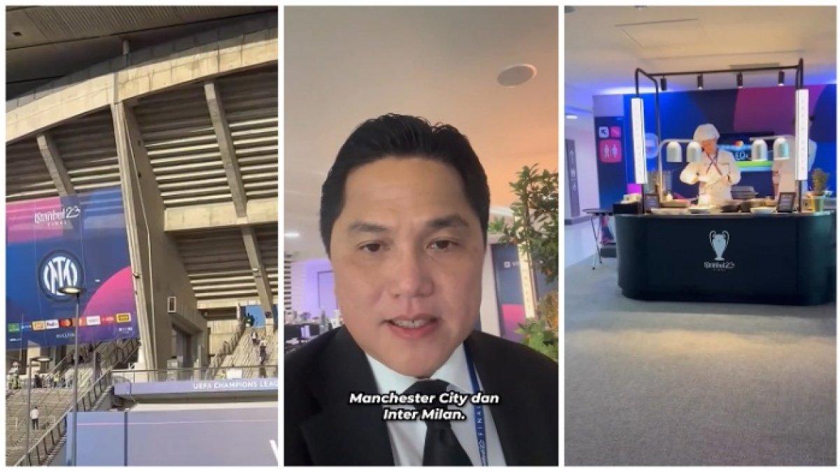Video berdurasi singkat yang diunggah Erick Thohir di akun Instagram pribadinya mempertontonkan suasana di Ataturk Olympic Stadium lokasi final Liga Champions 2023.