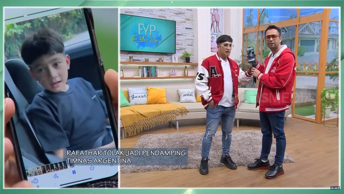 "Nih, gue ceritain sedikit ya. Kemarin tuh Rafathar dikasih kesempatan sama pak Erick Thohir untuk menggandeng Timnas Argentina," jelas Raffi Ahmad kepada Irfan Hakim.