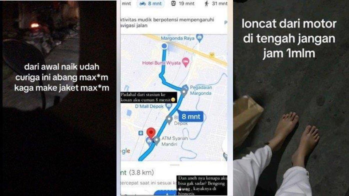 Ia lalu baru tersadar kalau driver ojol tersebut sudah membawanya jauh dari tujuan.