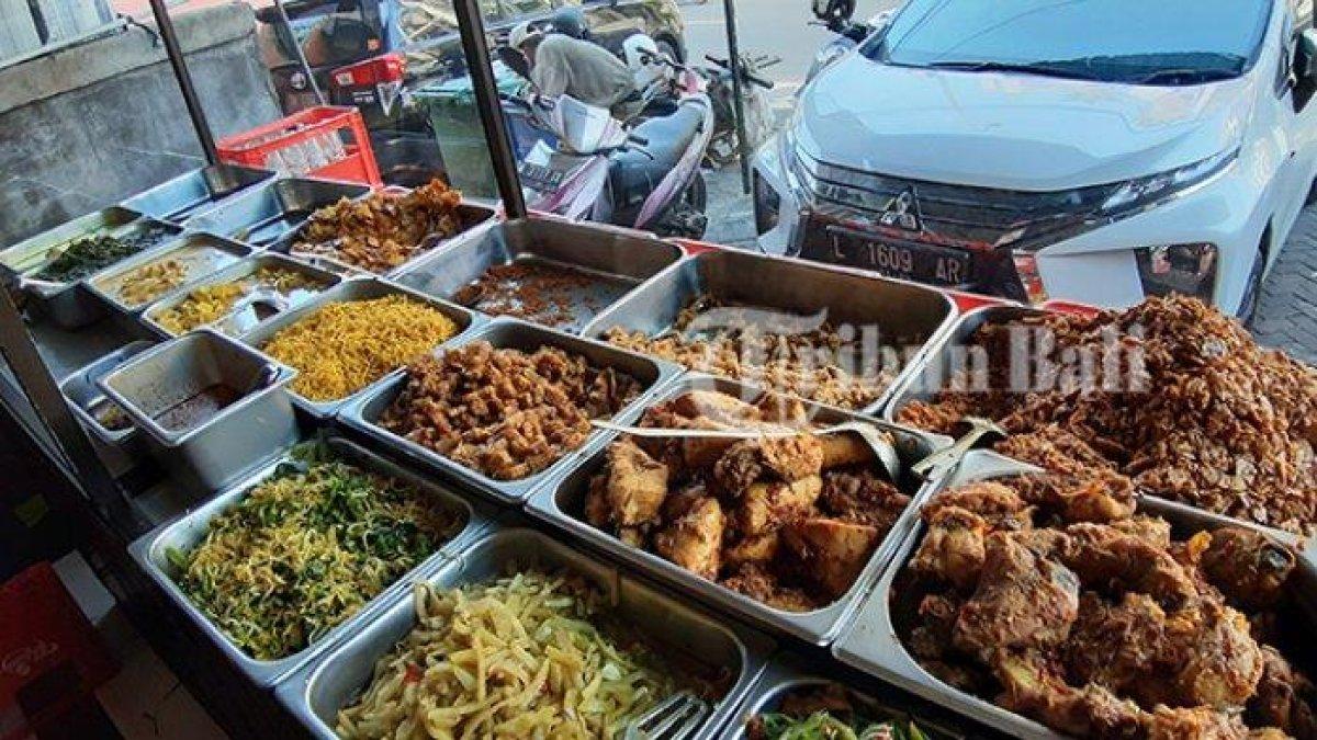 Nasi Pedas Ibu Andika terkenal menjajakan nasi campur khas Bali dengan beragam pilihan lauk.