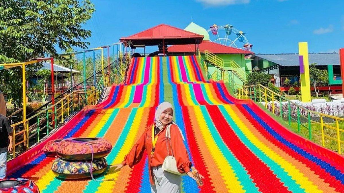 Di tempat wisata ini ada beragam spot selfie, wahana permainan, taman, kolam renang hingga restoran.