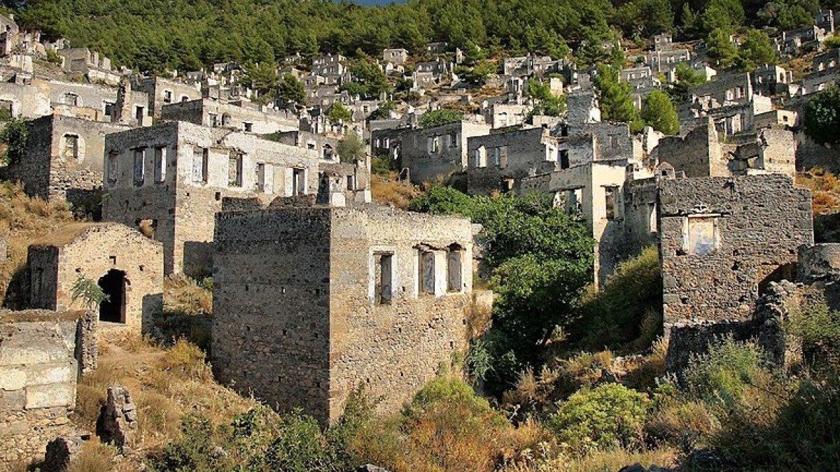 Di Kayakoy, sekitar 350 rumah sekarang kosong dan sebagian besar tidak memiliki atap, bersama dengan dua gereja Ortodoks Yunani dan air mancur serta waduk yang mengairi kota.