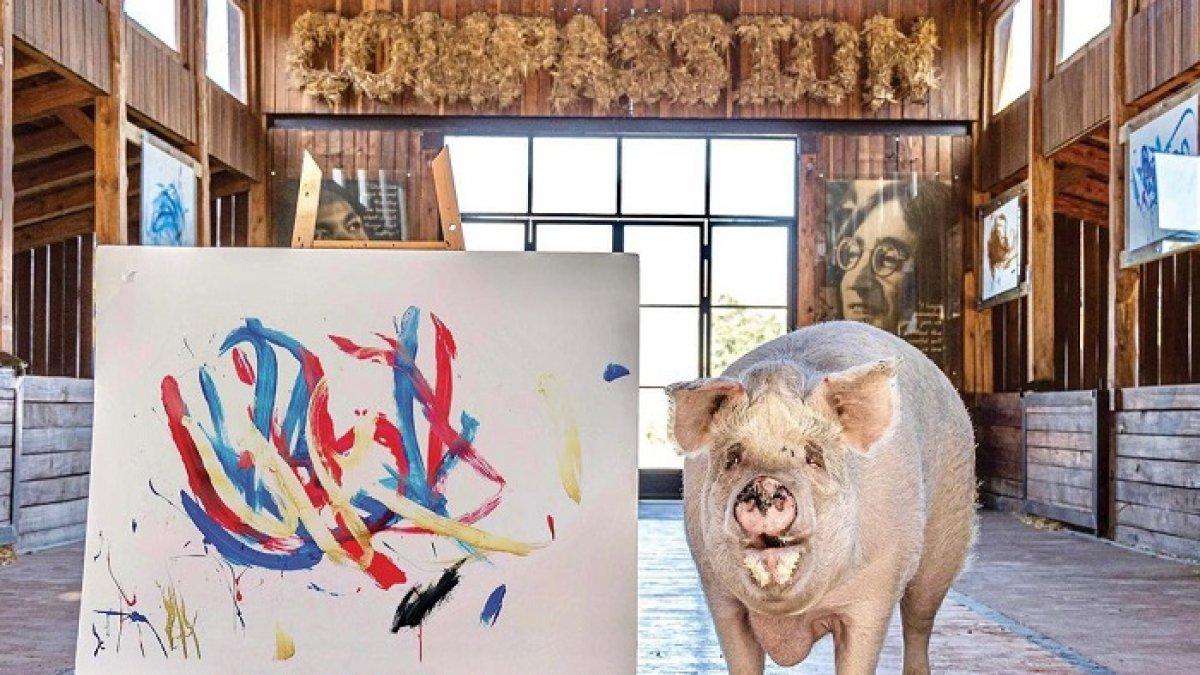 Pigcasso terkenal memiliki keahlian melukis dengan kuas di mulutnya.