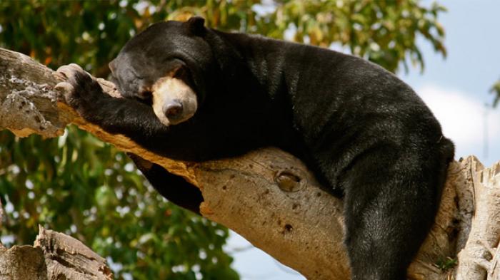 "Beruang madu adalah beruang terkecil, tingginya paling banyak 1,3 meter. Sementara spesies lain dapat berdiri setinggi paling banyak 2,8 meter dengan kaki belakangnya," menurut kebun binatang.