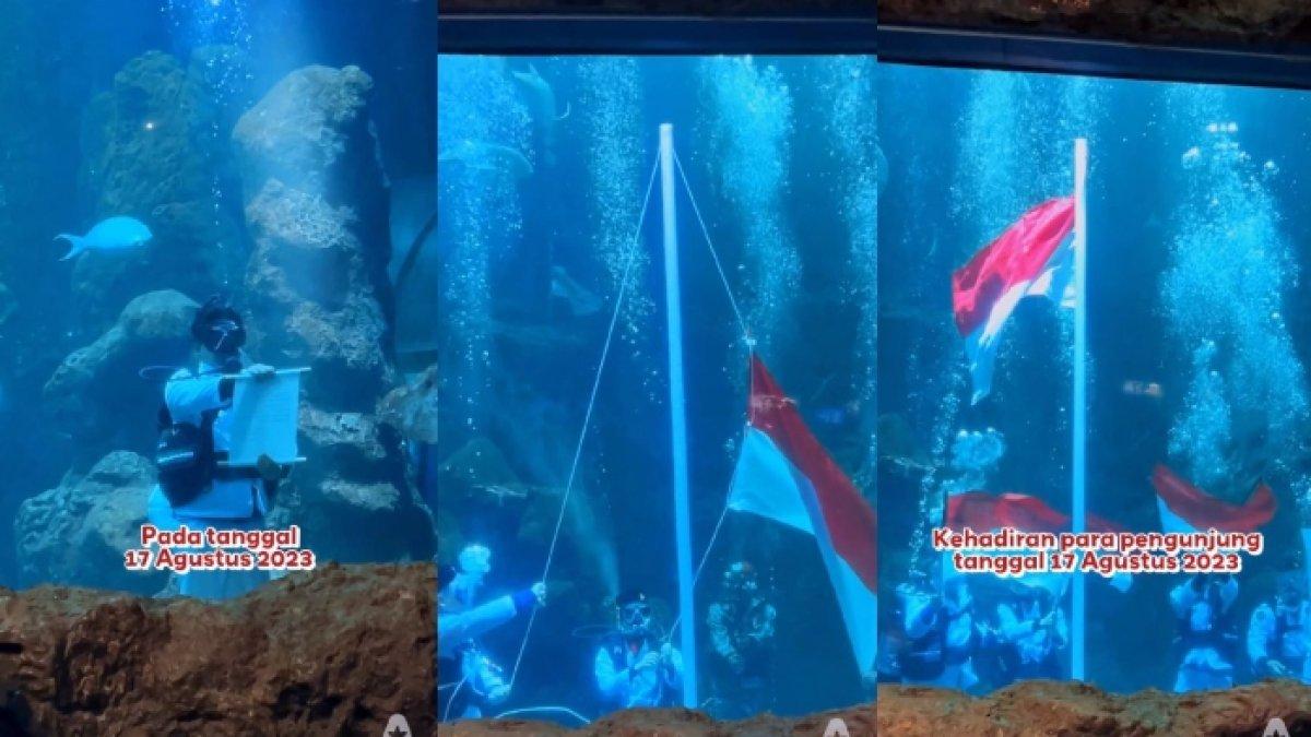 Melalui website resmi tempat wisata Sea World Ancol, pengibaran bendera merah putih akan dilakukan di dalam air pada Kamis (17/8) pagi.