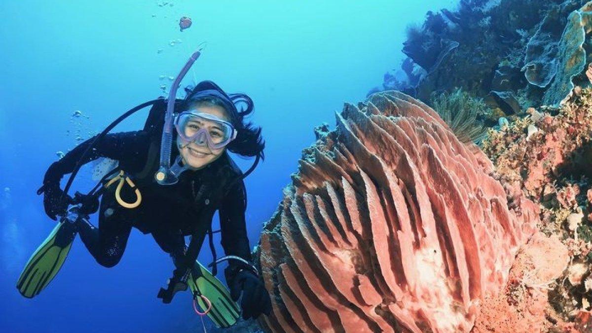 Dalam Instagramnya, ia mengunggah keseruan diving di Ternate bersama ribuan ikan yang berenang bebas.