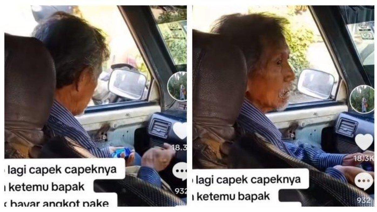 Dalam video yang diunggahnya, seorang kakek renta dengan rambut memutih tampak duduk di bangku depan mobil angkutan umum tersebut.