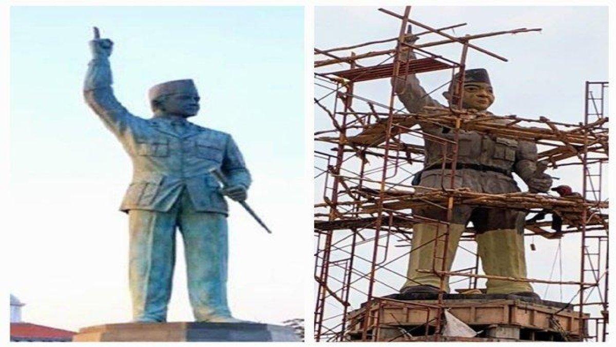 TRIBUNTRAVEL.COM - Viral di media sosial, patung Presiden Pertama RI, Ir Soekarno atau Bung Karno di Jalan Lintas Kecamatan Banyuasin III, Sumatera Selatan.
