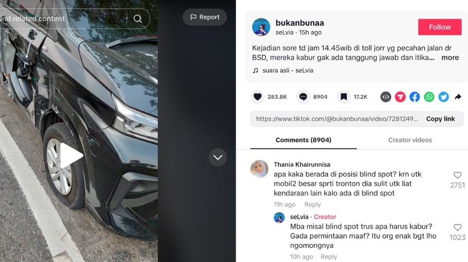 Menurut Sony, mobil yang dikemudikan wnaita tersebut kemungkinan berada di blindspot.