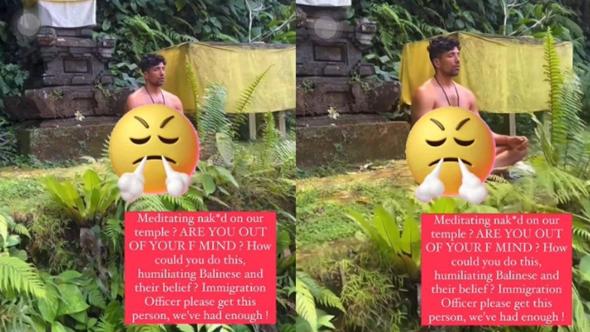 Perilaku turis asing ini dianggap buruk karena terlihat bermeditasi tanpa mengenakan busana.