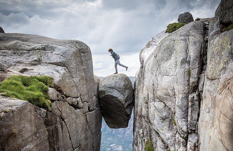 Batuan tersebut terapung di jurang sedalam 984 meter, namun hal tersebut jelas bukan penghalang bagi mereka yang senang menguji ketakutan mereka dan mendapatkan foto-foto menakjubkan yang diklik dalam prosesnya.
