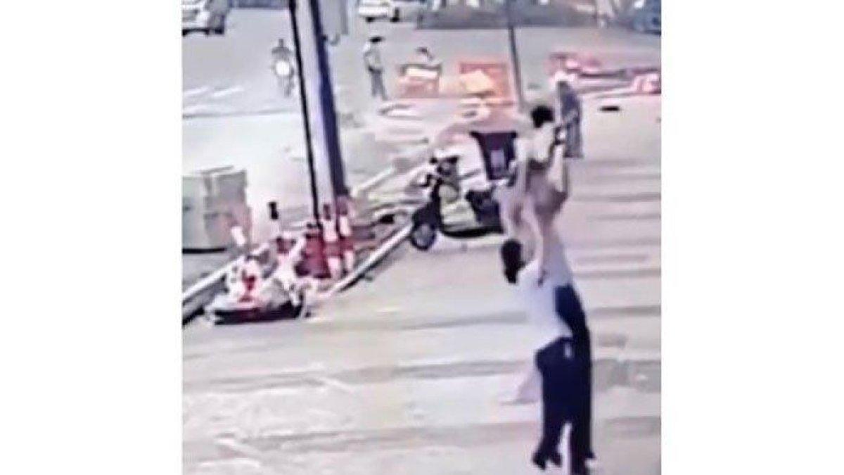 Dalam video yang viral itu merekam aksi pria menangkap balita yang terjatuh dari gedung.
