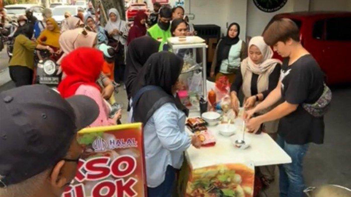 Aksi bintang Ganteng-ganteng Serigala dan Jodoh Wasiat Bapak itu terlihat cekatan melayani pembeli ciloknya yang mayoritas wanita.