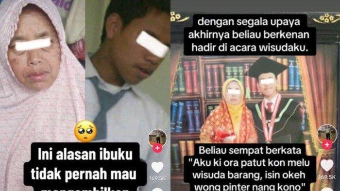Pun saat diminta untuk menghadiri acara wisuda putra tercintanya, ibu tersebut merasa malu dan tak pantas.